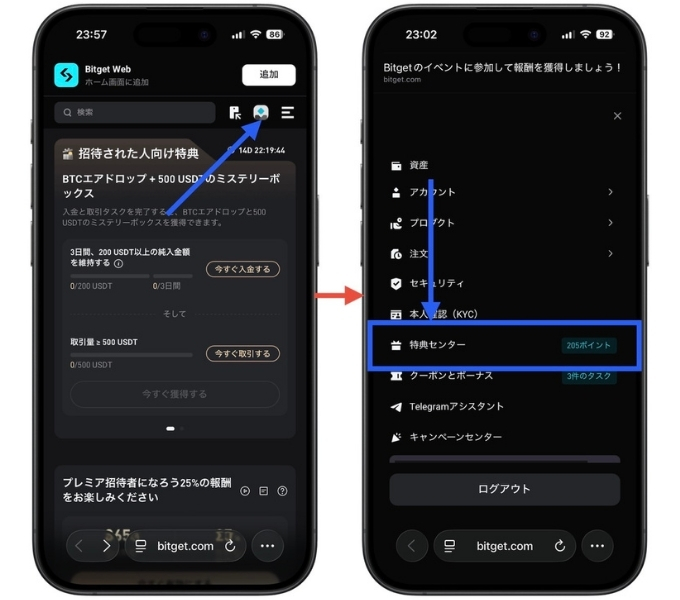 では、Bitgetの200USDTクーポンの受け取り方を解説します。